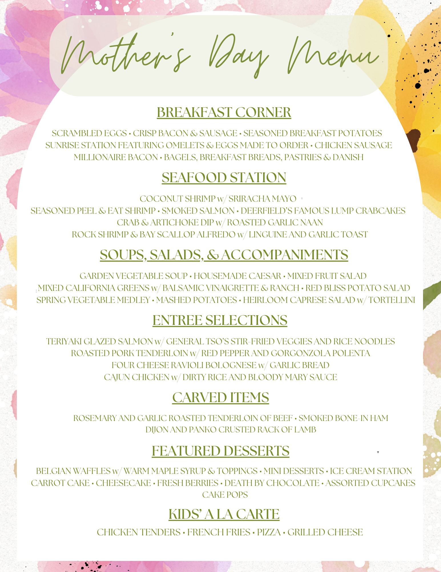 Join us for Deerfield’s Mother’s Day Brunch Sunday May 11. Honor “Mom” in style!