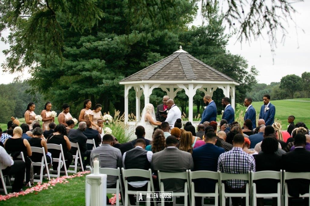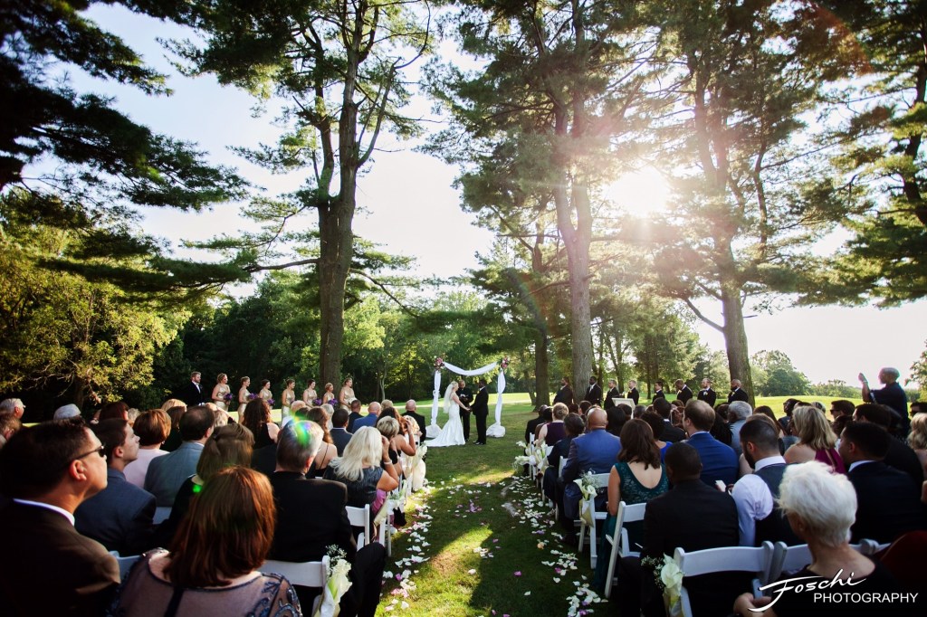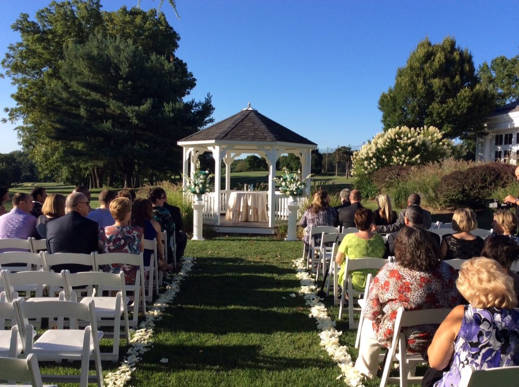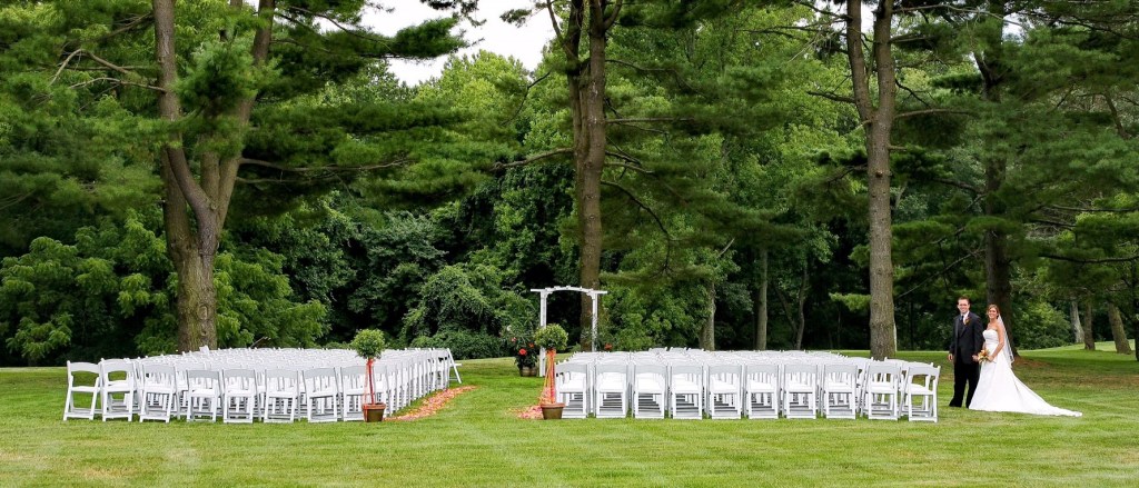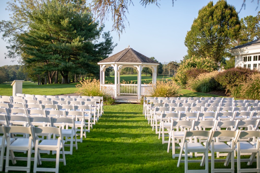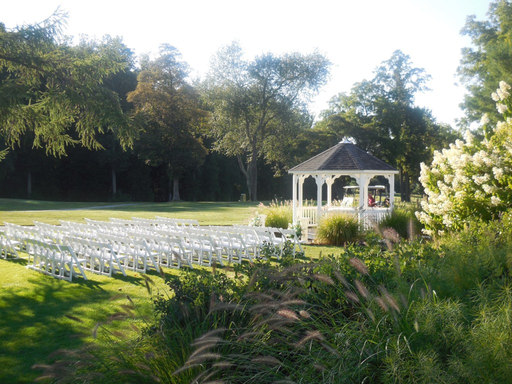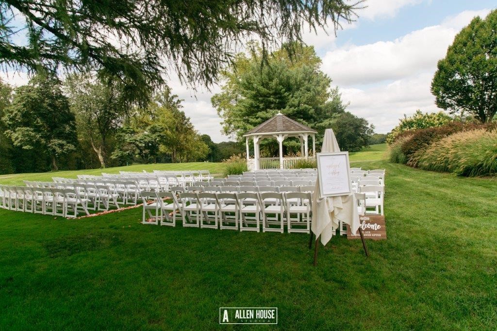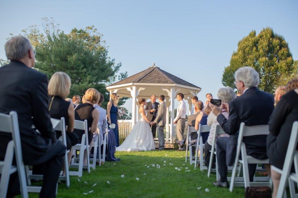 The Gazebo is a perfect backdrop to say “I Do” for wedding ceremonies up to 230 guests. You can add your own personal touch with florals or fabric, and our beautiful fountain is visible for your guests to enjoy. Guests are seated in partial shade under a beautiful American Larch tree.