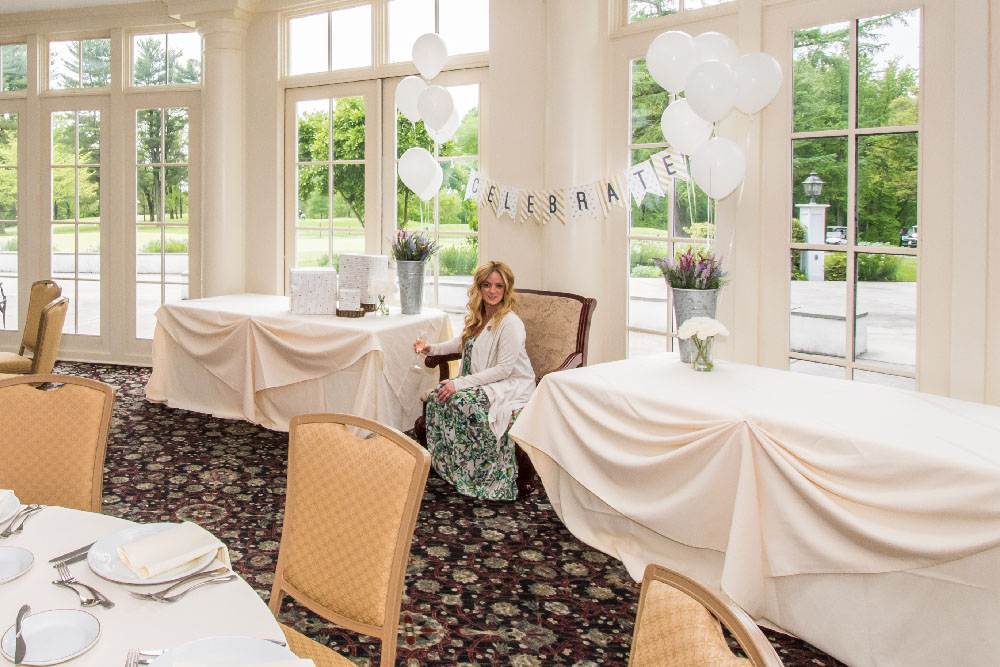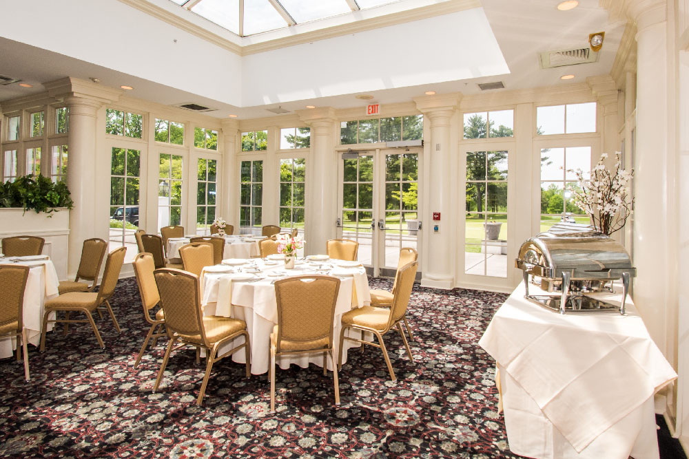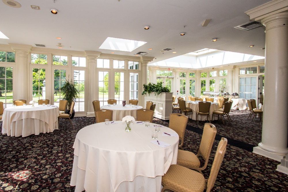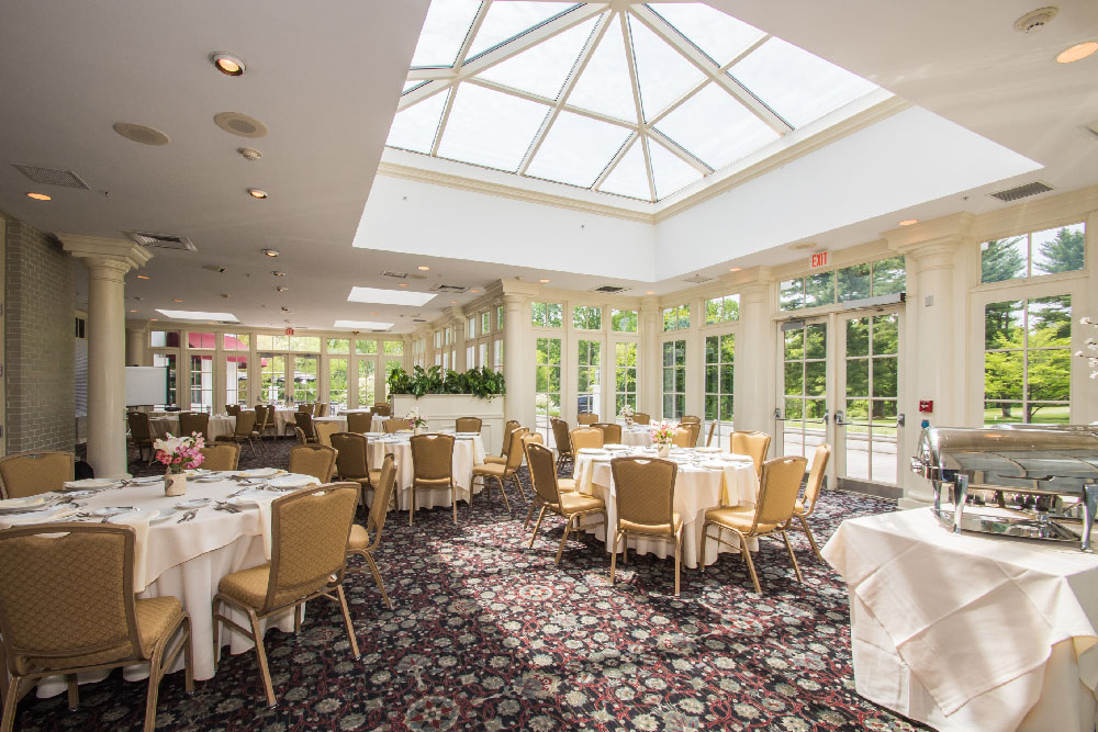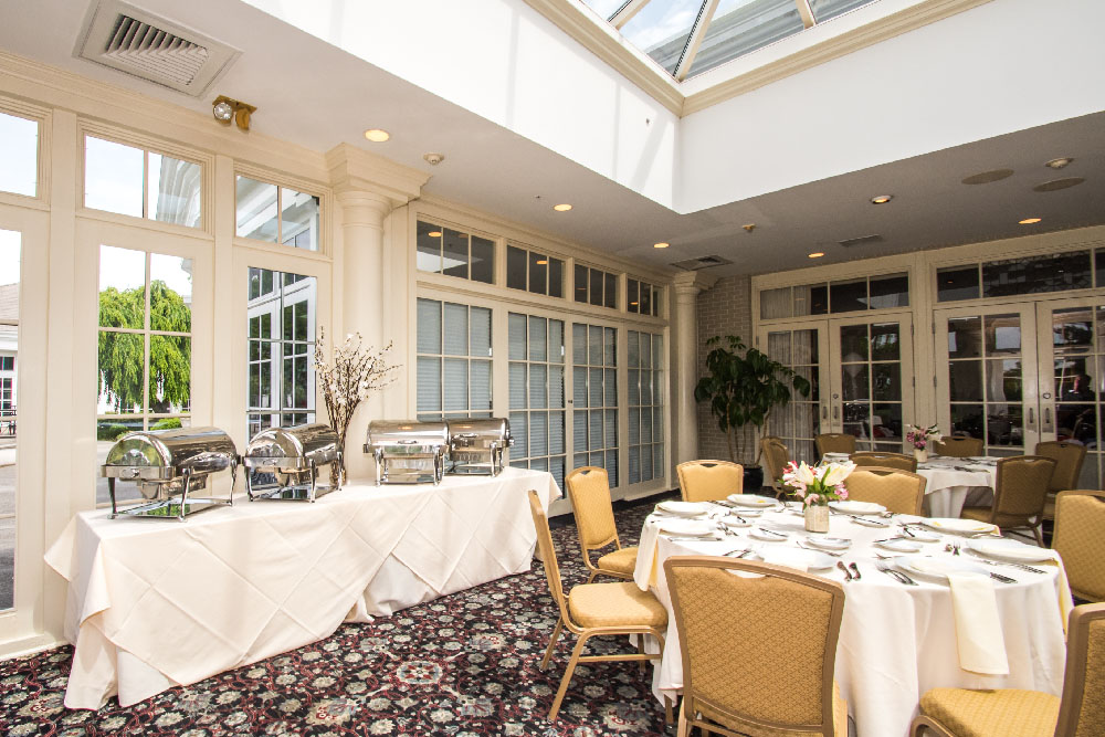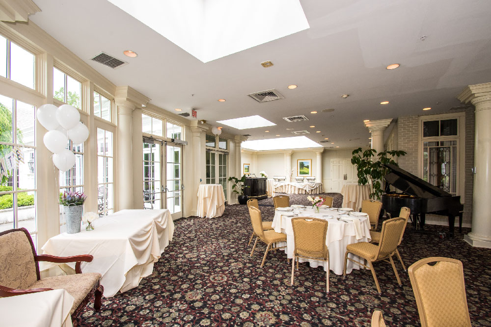 In Deerfield’s atriums, you are surrounded by glass walls that provide warm, natural light to your cocktail party, wedding event, bridal luncheon, birthday party, corporate breakfast, or shower. The view of the Terrace and nearby grounds is unbeatable. Plus, a baby grand piano is featured in the Sussex Atrium to add music and distinction to your next special event.
